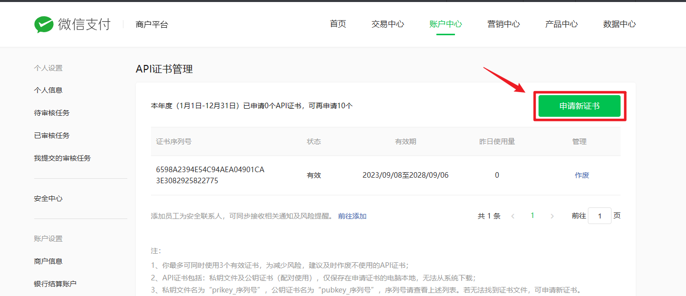 登录成功后,进入账户中心—API安全—申请API证书