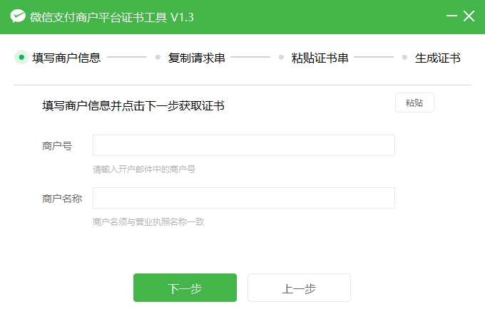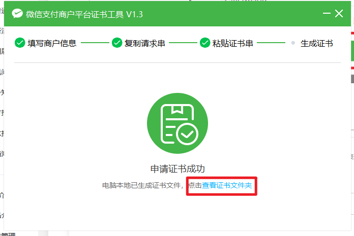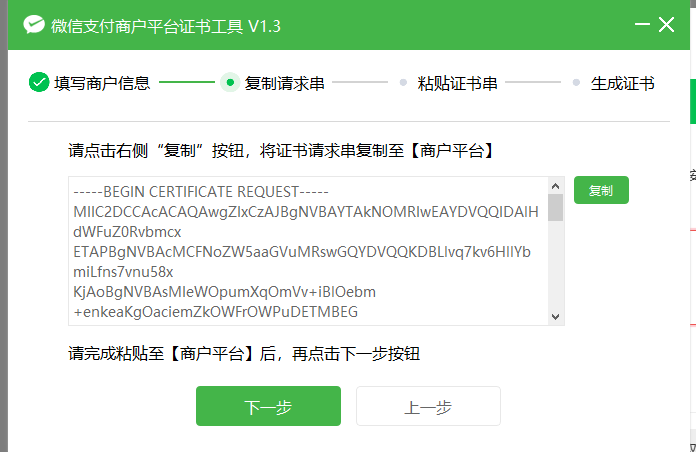 “下载证书工具” ,解压缩文件并按步骤操作获得请求串: