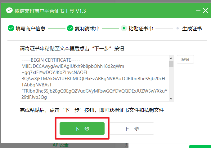 粘贴到证书工具:
