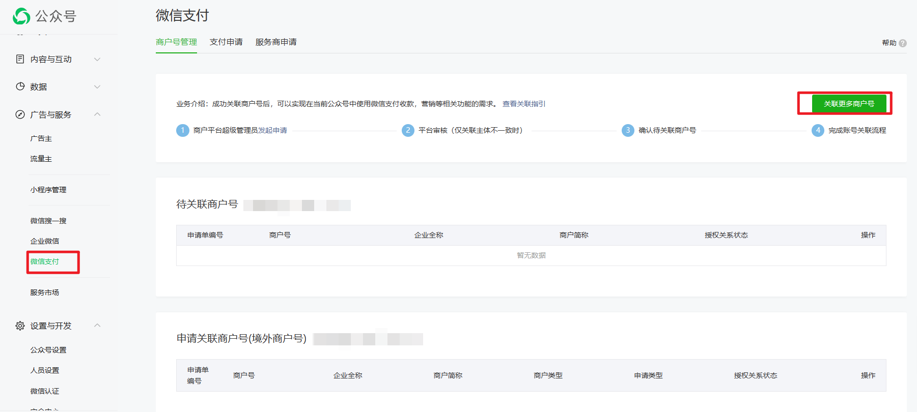 广告与服务—微信支付——关联商户号