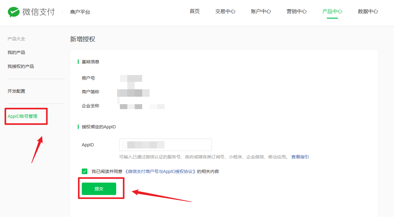 将APPID绑定到商户号: