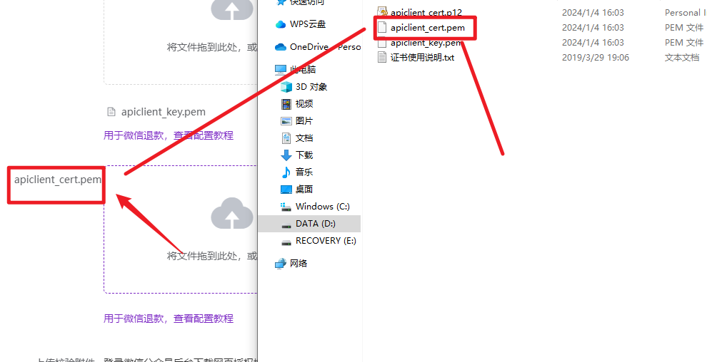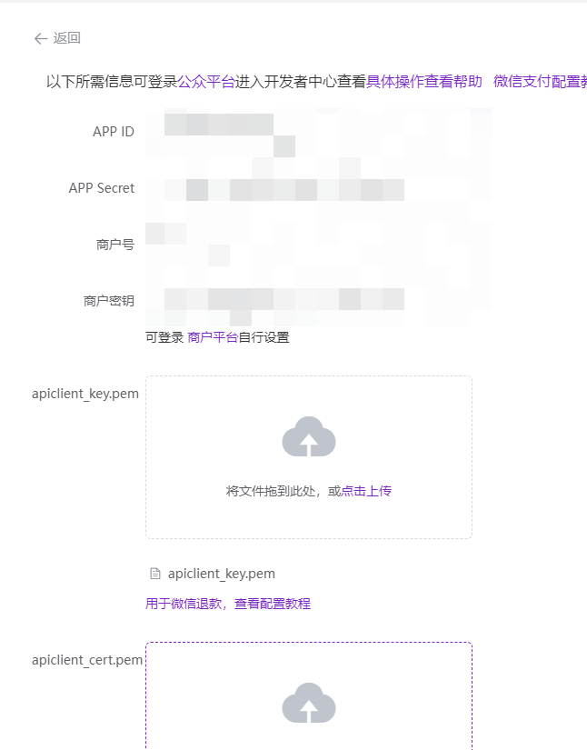 其中退款证书需要将之前下载的证书文件进行上传: