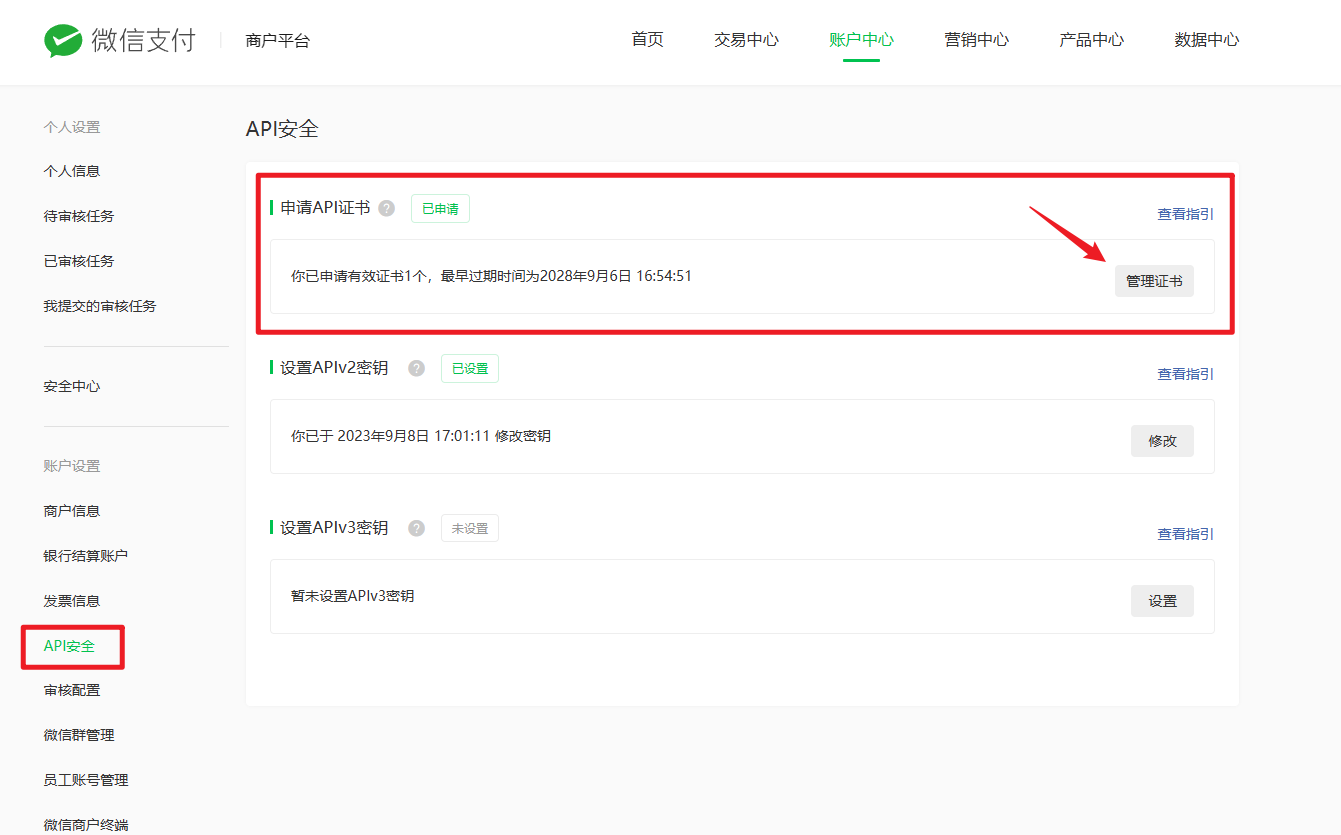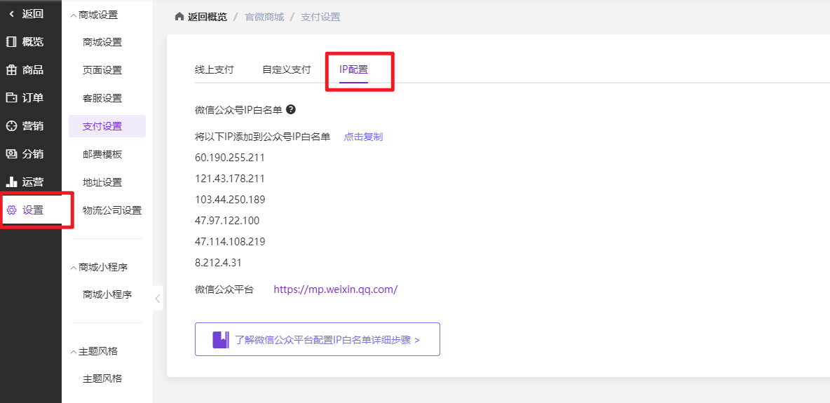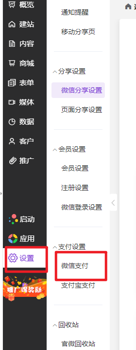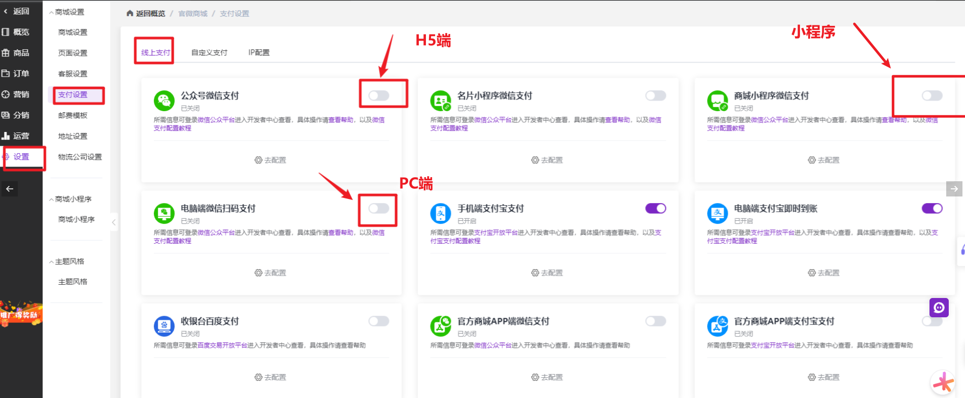 开启微信支付功能(小程序用户开通【商城小程序微信支付】功能):