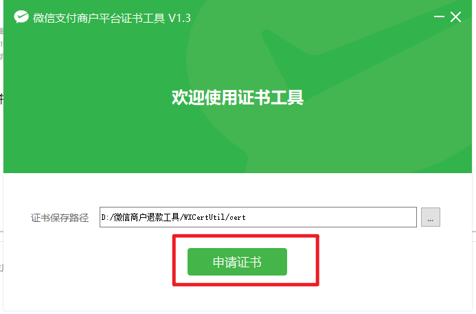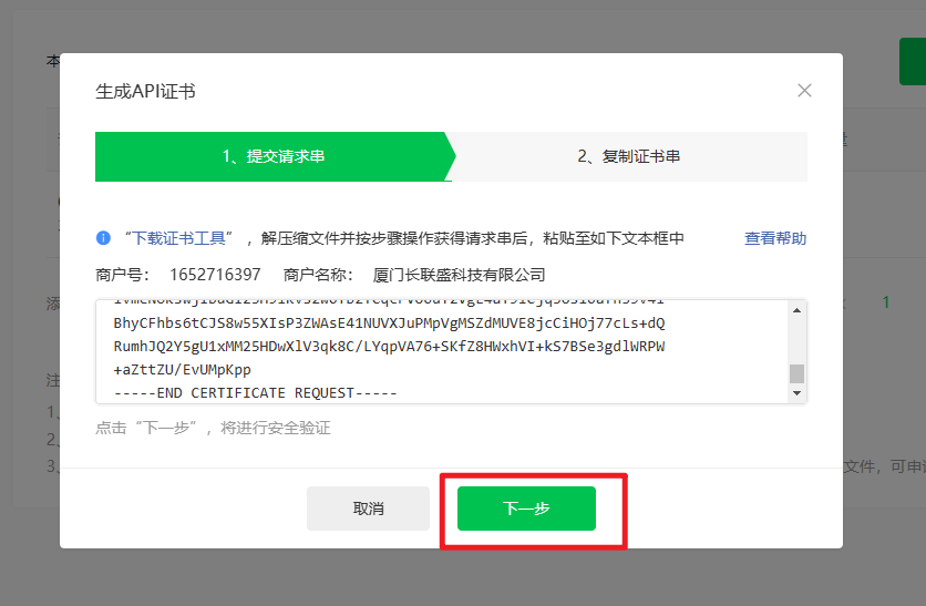 “下载证书工具” ,解压缩文件并按步骤操作获得请求串: